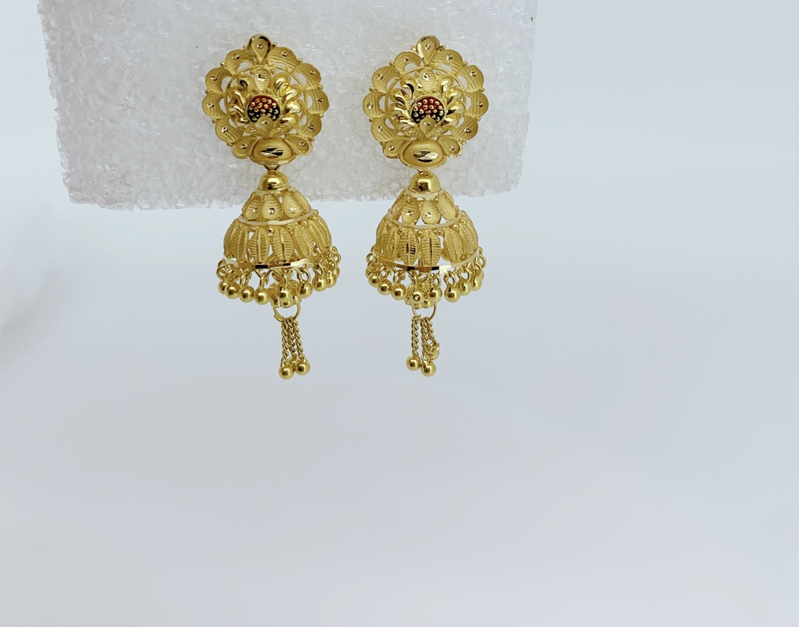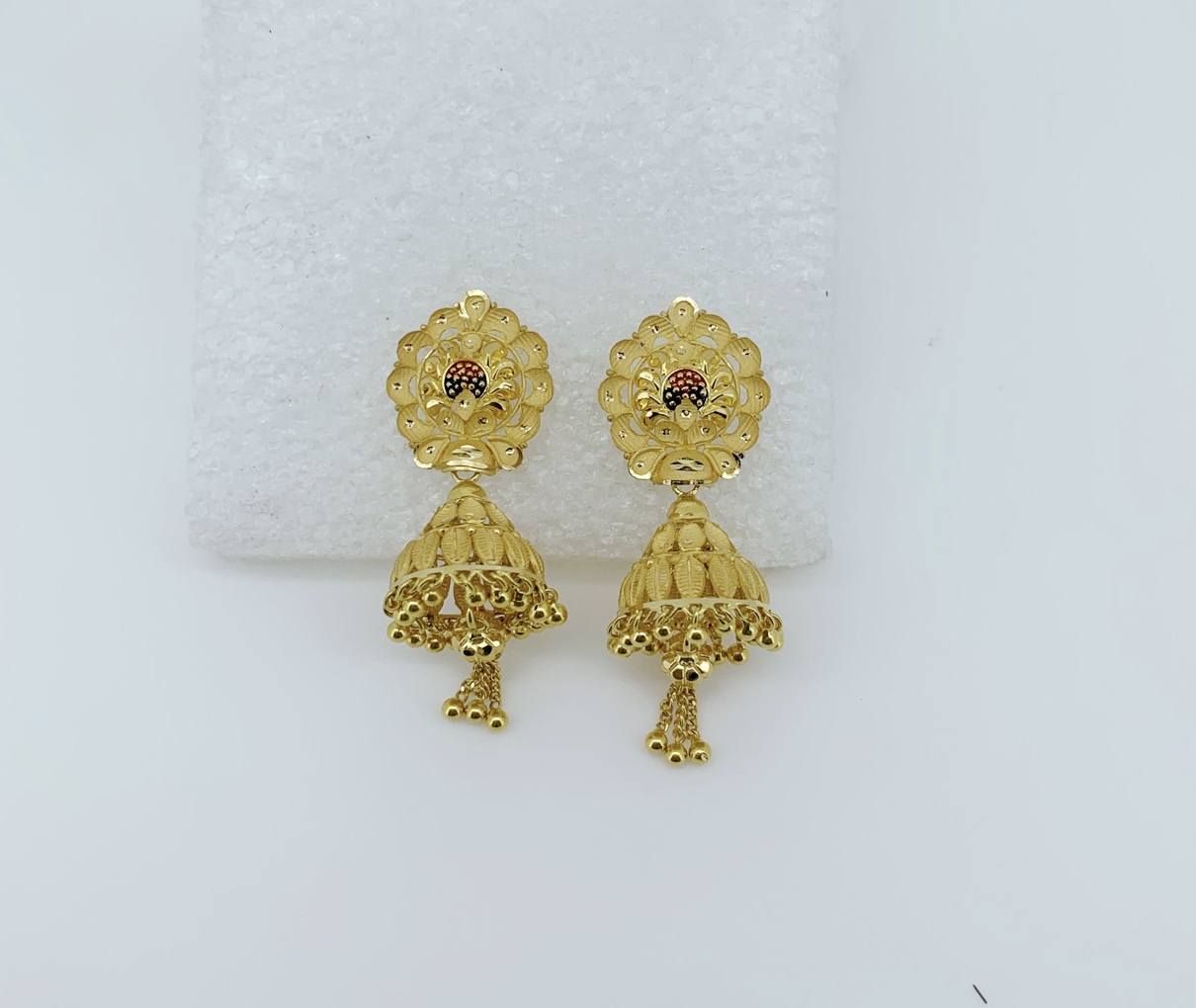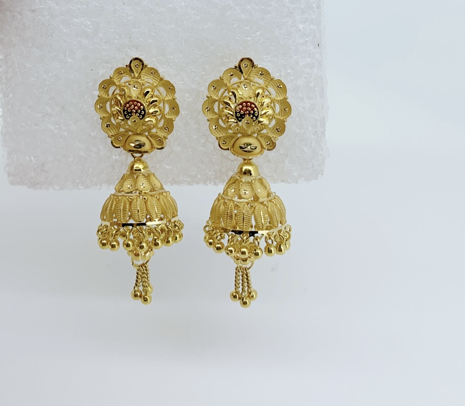 Crafted for comfort and graceful movement, these jhumkas offer a luminous presence perfect for festive celebrations and special occasions. A charming addition to any jewellery collection, ideal for those who appreciate classic craftsmanship paired with enduring golden brilliance