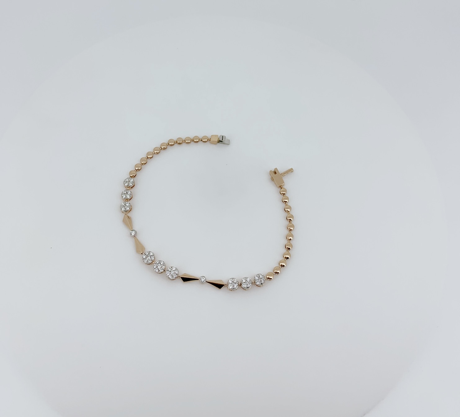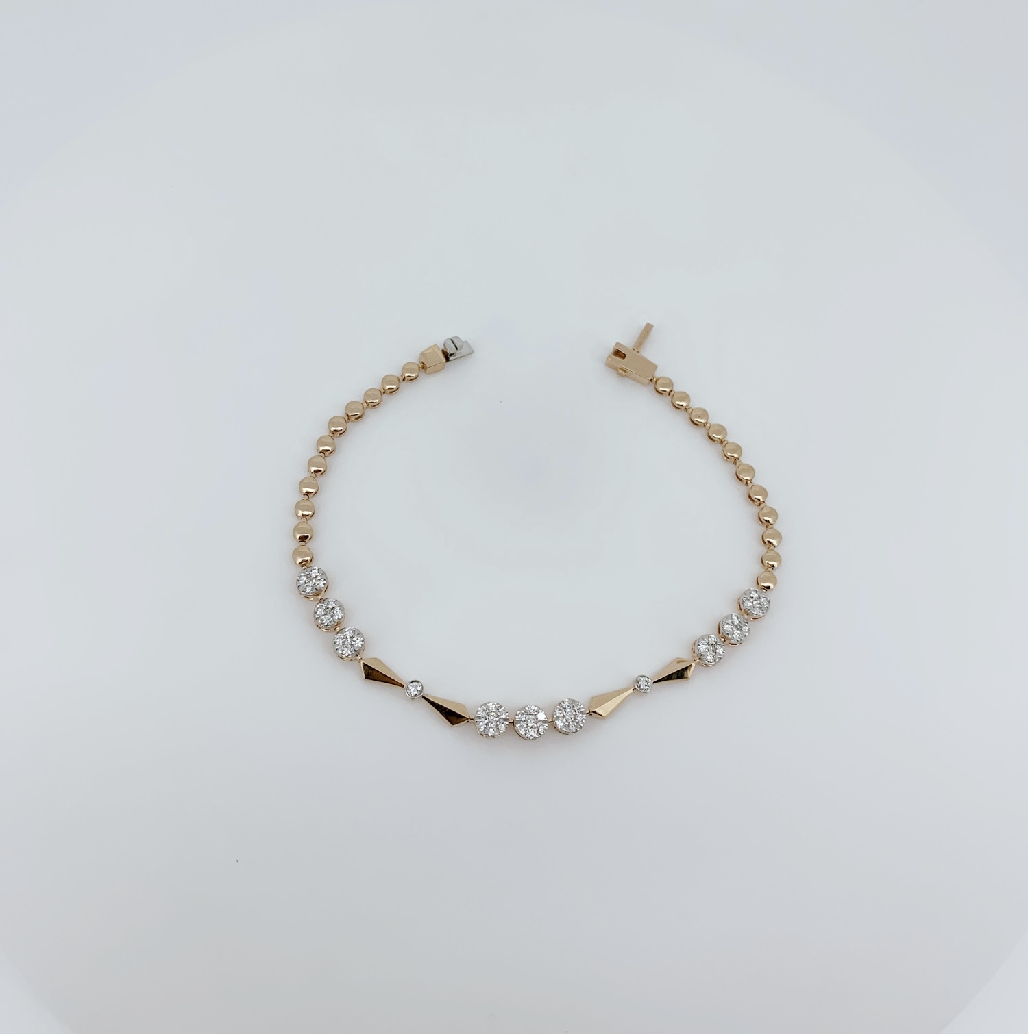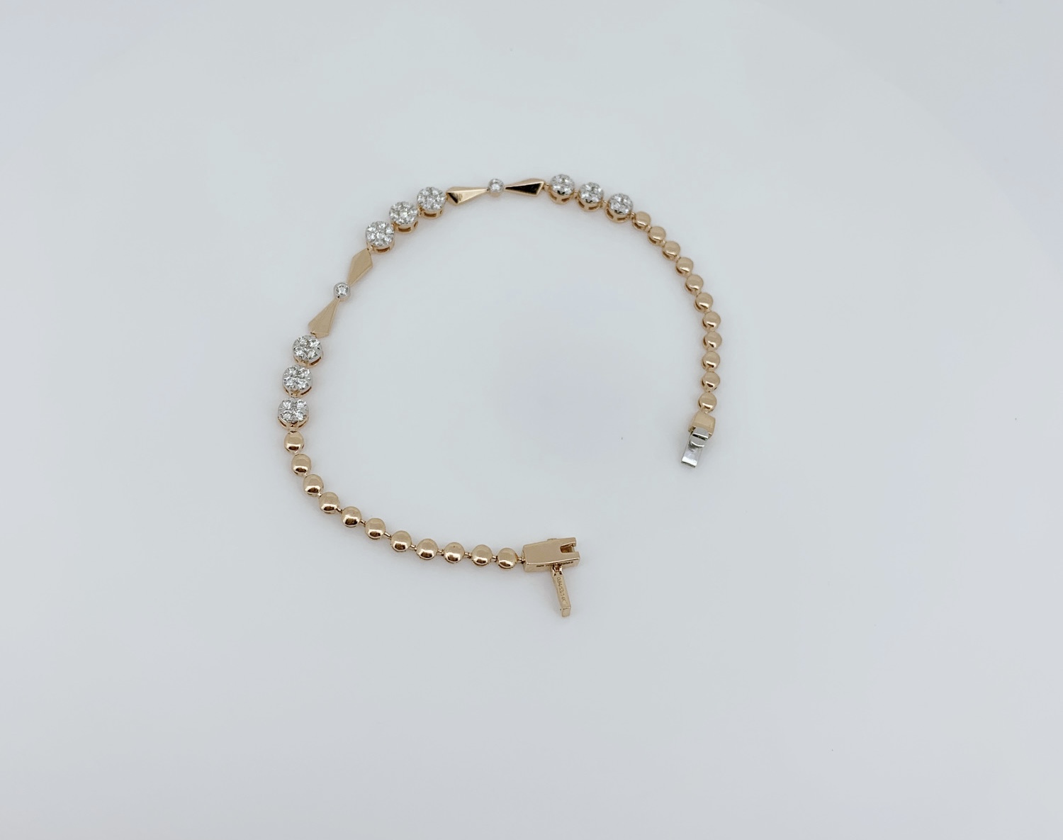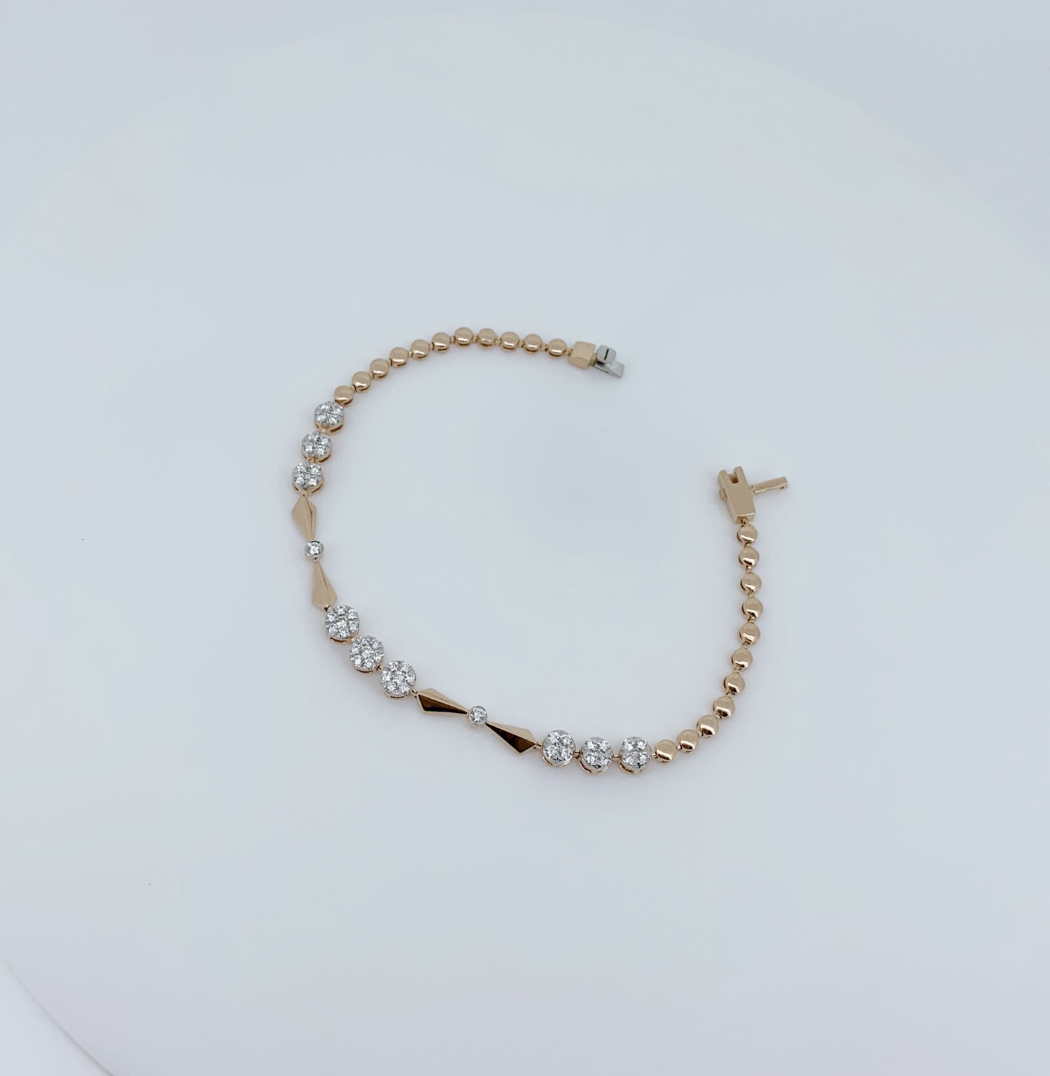 The Linear Elegance Diamond Bracelet captivates with its streamlined design and precisely set diamonds that create a clean, graceful silhouette. The linear arrangement enhances its modern appeal, while the sparkling stones add depth and luminous charm to the structured form.