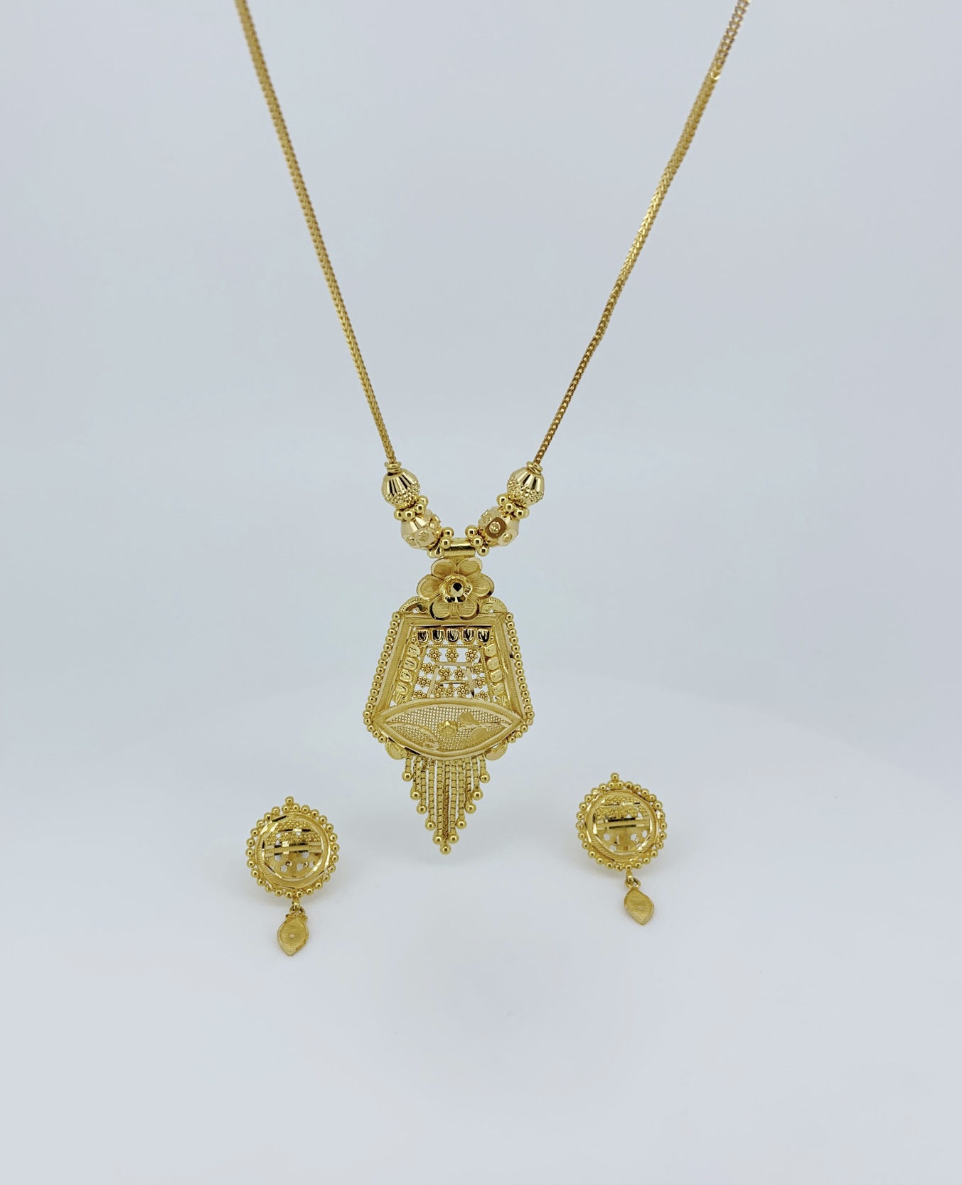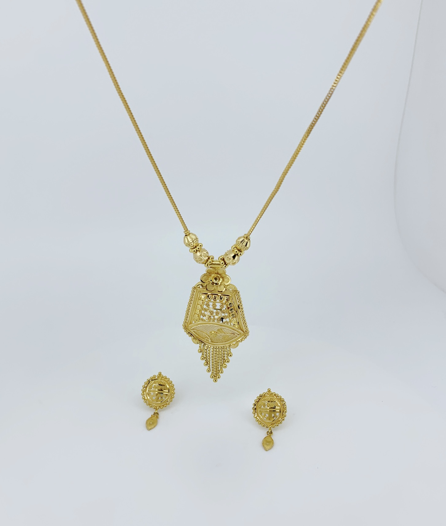 Designed for comfort and lasting shine, this necklace set offers a luminous appeal perfect for weddings, festive celebrations, and grand occasions. A distinguished addition to any fine jewellery collection, ideal for those who appreciate traditional elegance paired with enduring golden legacy.